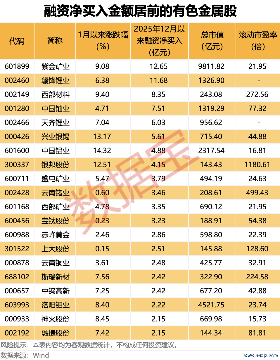 6只有色金属股 获融资净买入均超5亿元6只有色金属股 获融资净买入均超5亿元