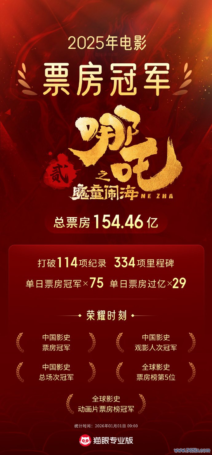 《哪吒之魔童闹海》成2025年度全球票房冠军《哪吒之魔童闹海》成2025年度全球票房冠军
